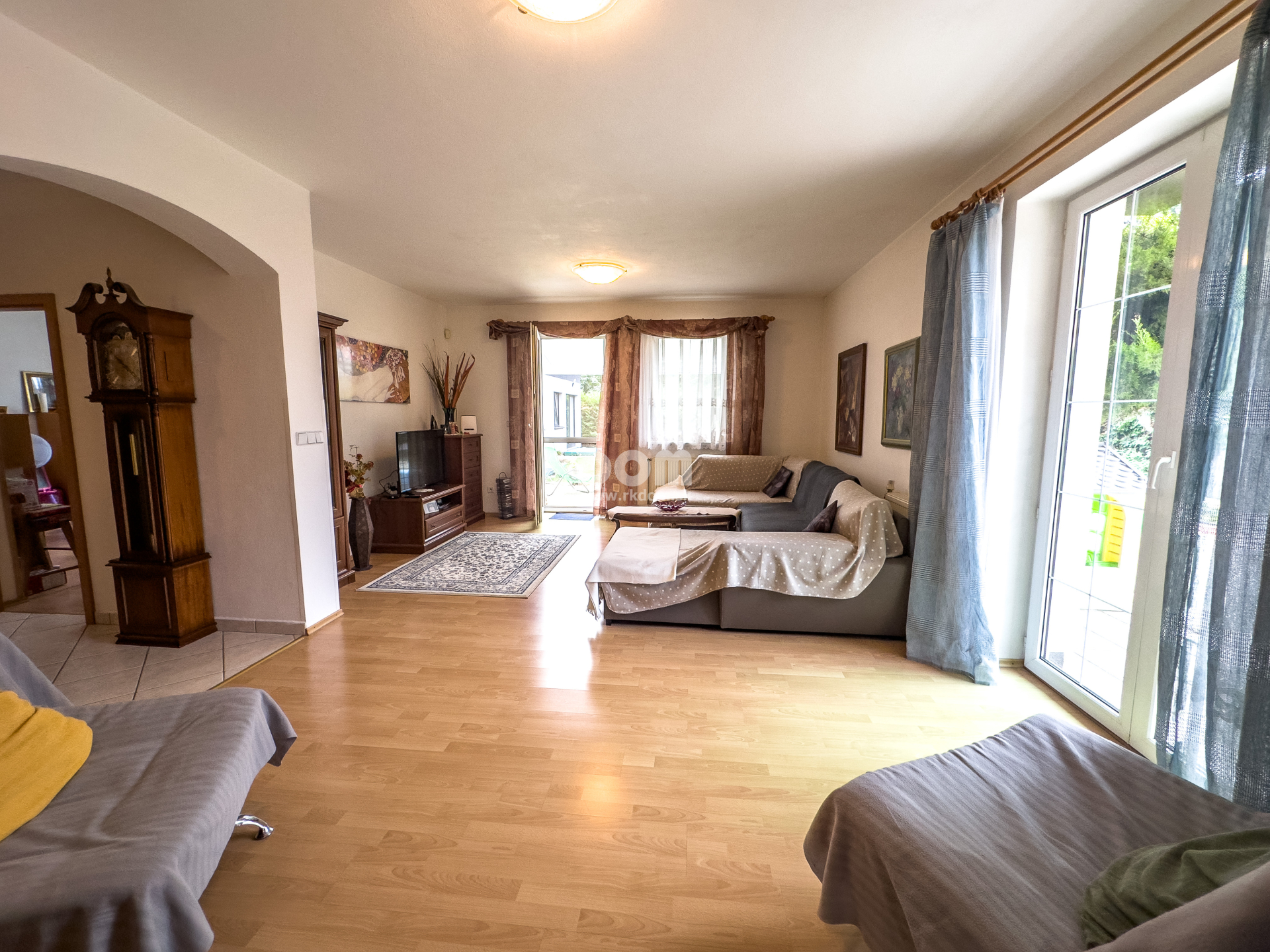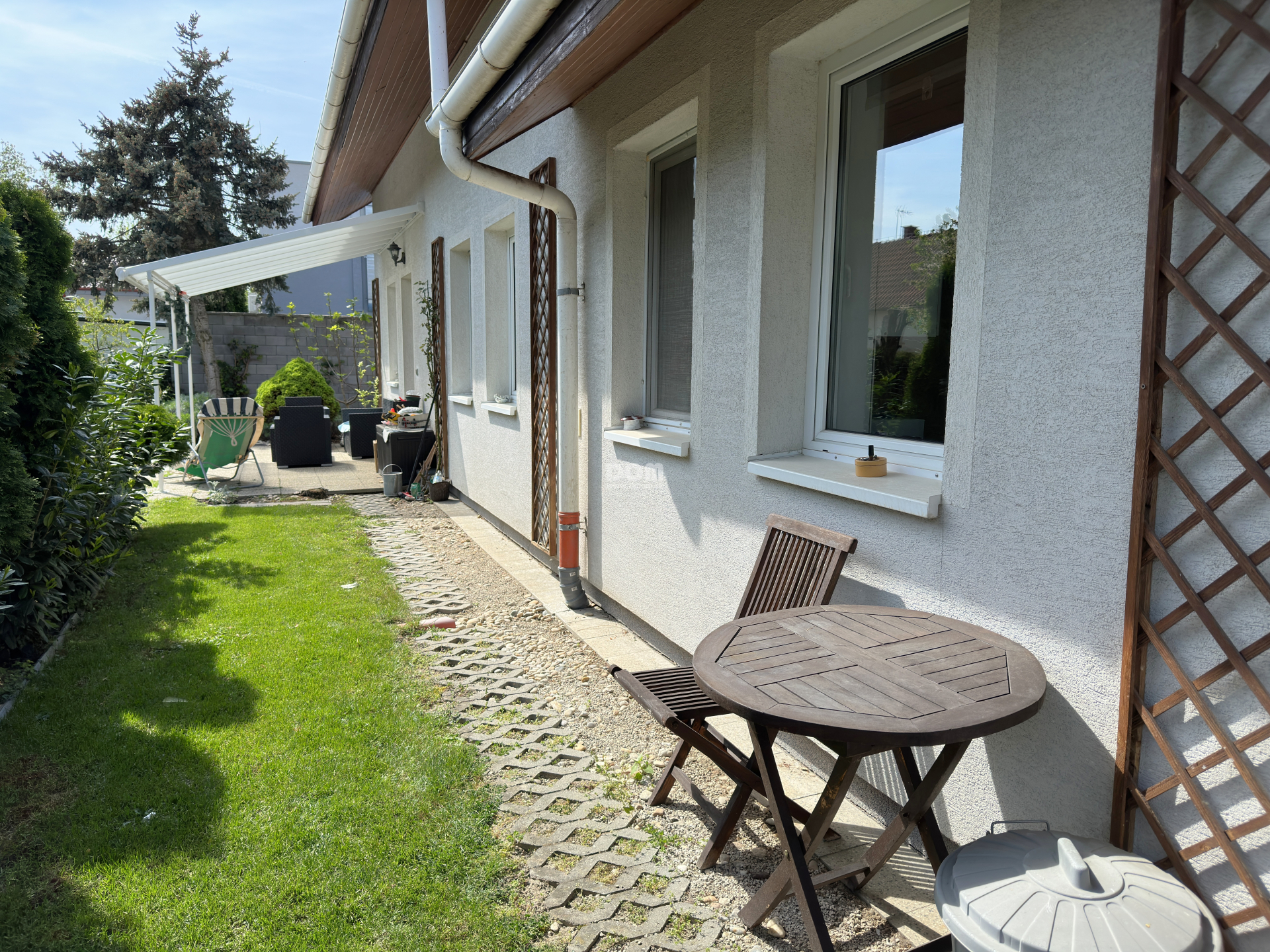 Pre zvýšenie flexibility poskytuje dom aj samostatný vchod, kde nájdete ďalšiu kúpeľňu so sprchovým kútom a WC, dobre vybavenú kuchyňu a veľkú izbu - ideálna na viacgeneračné bývanie alebo vytvorenie kancelárie.