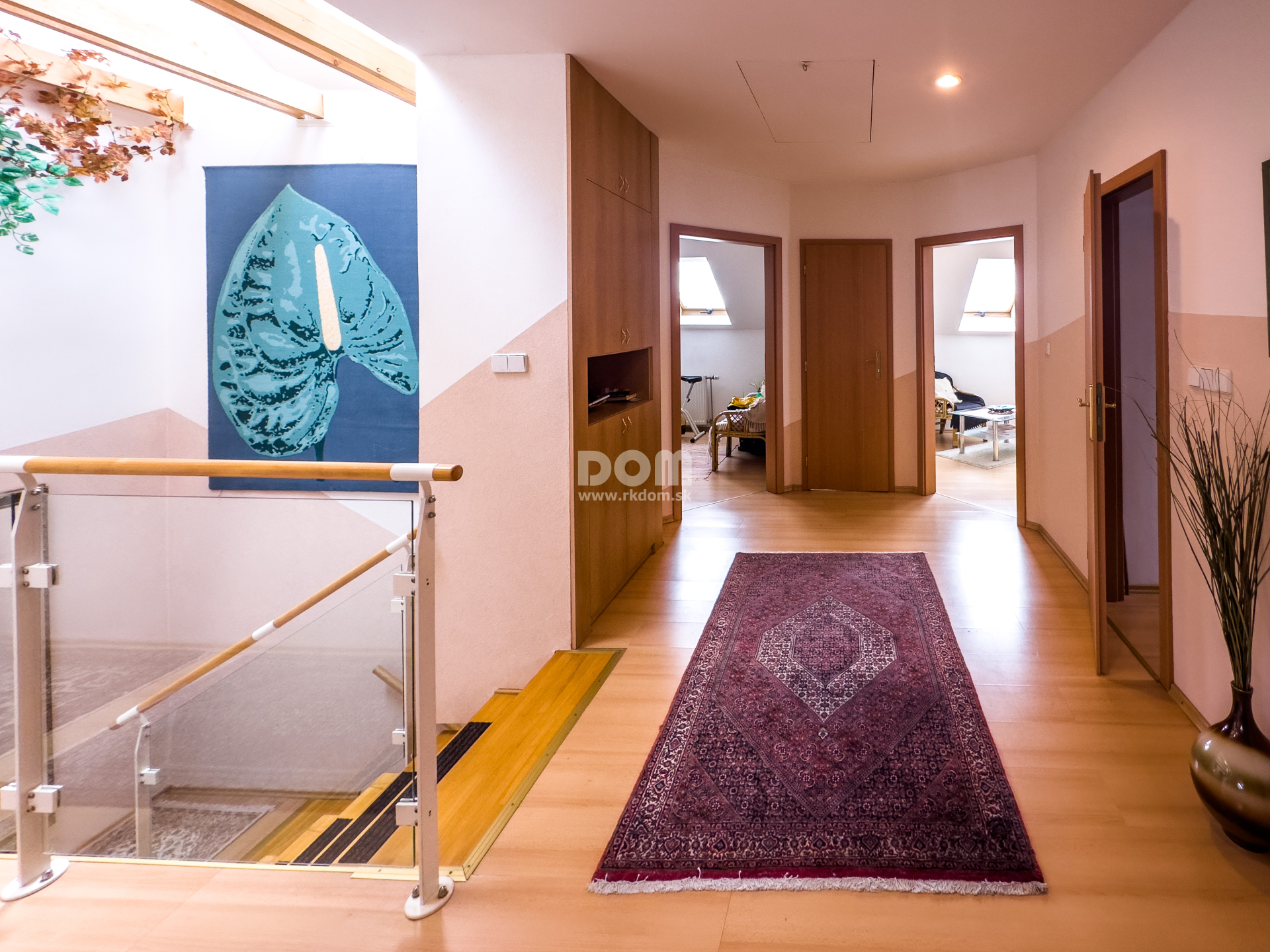 Na vrchnom podlaží Vás očarí priestranná pracovňa, nájdete tu ešte ďalšie tri spálne, priestranný šatník a ďalšie dve kúpeľne.