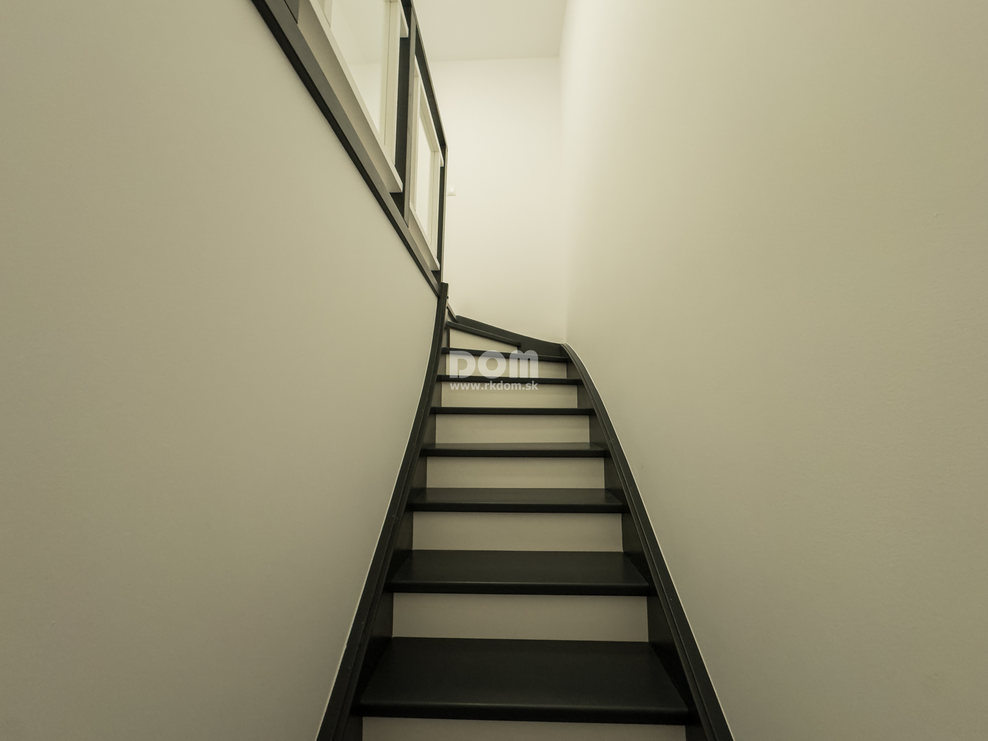 Na prízemí sa nachádza vstupná chodba, kúpeľňa, priestranná obývacia izba prepojená s jedálňou a kuchyňou s východom na zasklenú terasu. Pod schodiskom je technická miestnosť.